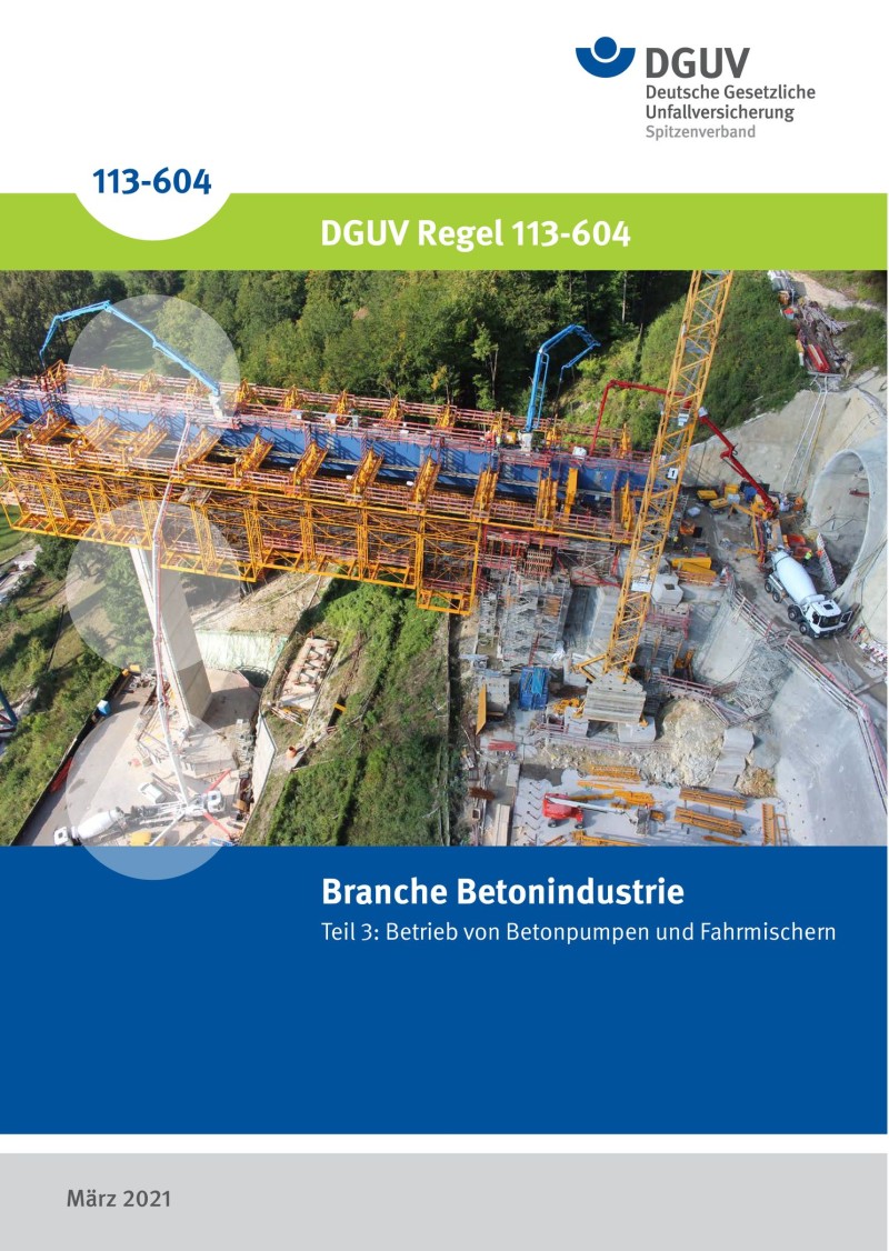 Um alle Sichtweisen zu erfassen und einen hohen Praxisbezug herzustellen, erarbeiteten die Expertinnen und Experten der DGUV, insbesondere der Berufsgenossenschaft Rohstoffe und chemische Industrie (BG RCI), die Regel "Betrieb von Betonpumpen und Fahrmischern" gemeinsam mit namhaften Verbänden und Unternehmen der Branche. Es handelt sich dabei um den dritten Teil der Branchenregel für die Betonindustrie; das Dokument kann kostenfrei in der DGUV Publikationsdatenbank heruntergeladen werden. Teil 1 und 2 der Branchenregel thematisieren jeweils die Herstellung von Betonfertigteilen sowie von Frischbeton.