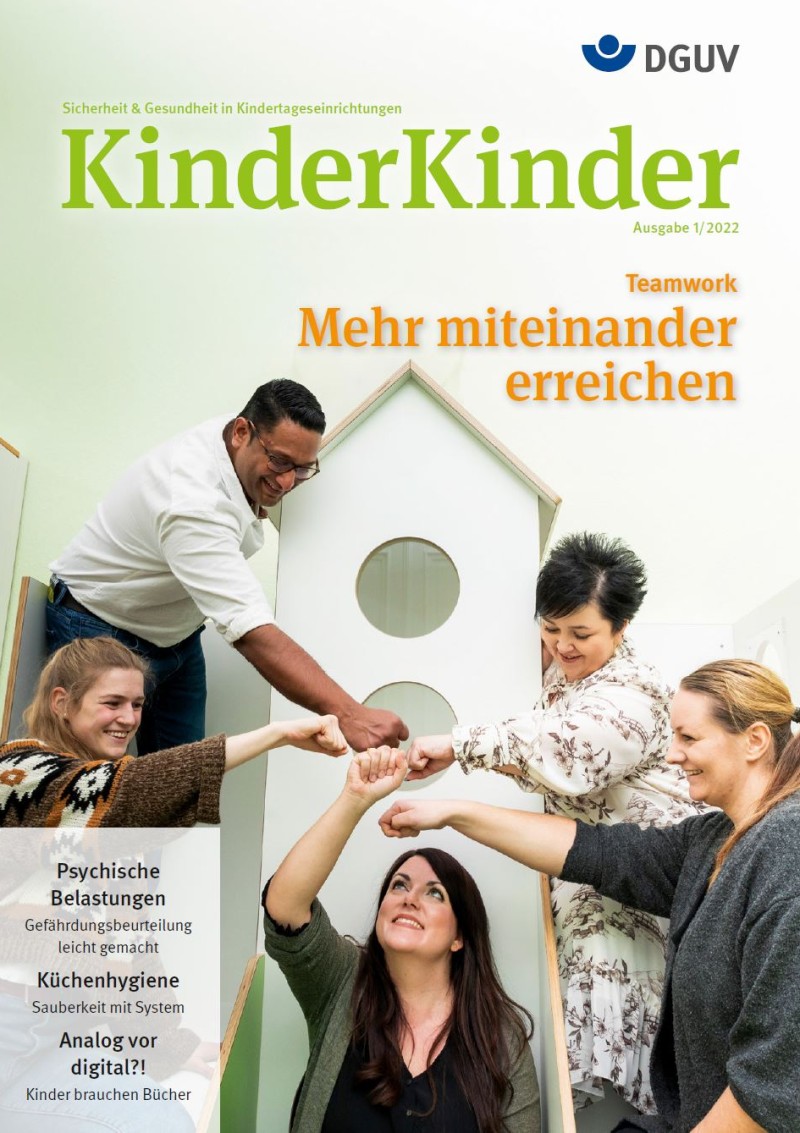 Mehr zum Thema Teambildung und wertschätzende Kommunikation lesen Sie in der neuen Ausgabe von "KinderKinder" das Magazin für Sicherheit und Gesundheit in Kindertageseinrichtungen. "KinderKinder" erscheint vier Mal im Jahr und wird vertrieben über die regional zuständigen Unfallkassen.