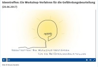 | Ideen-Treffen: Ein Workshop-Verfahren für die Gefährdungsbeurteilung Der Film erklärt, was psychische Belastung ist und mit welchen Maßnahmen man sie reduzieren kann. Insbesondere für kleine Betriebe sind die Ideen-Treffen ein effizientes Verfahren, um die Gefährdungsbeurteilung psychischer Belastung durchzuführen und gemeinsam mit den Mitarbeiterinnen und Mitarbeitern Maßnahmen zu entwickeln. |