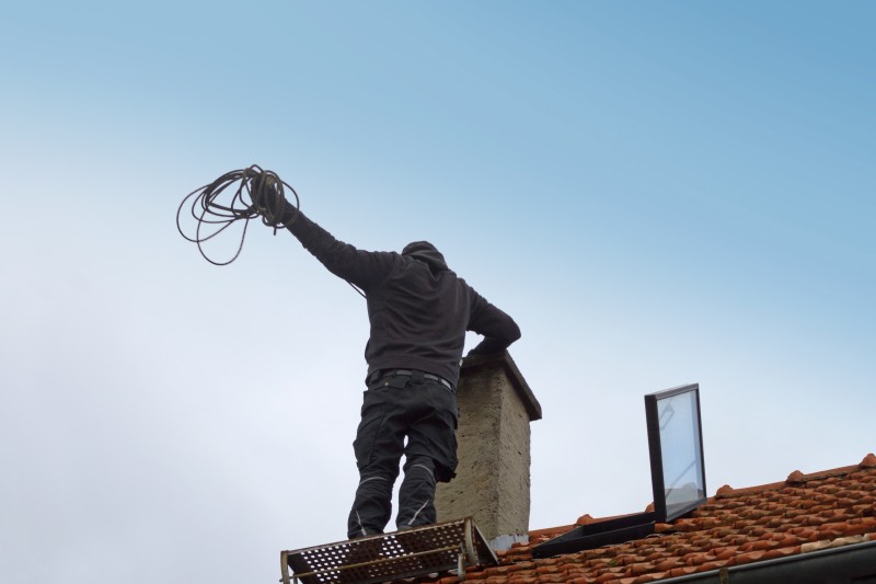 Schornsteinfeger auf einem Dach. Foto: pholidito - stock.adobe.com