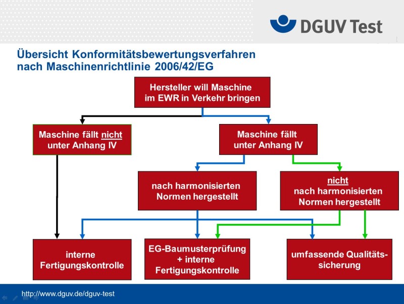 Übersicht über das Konformitätsbewertungsverfahren nach Maschinenrichtlinie 2006/42/EG.