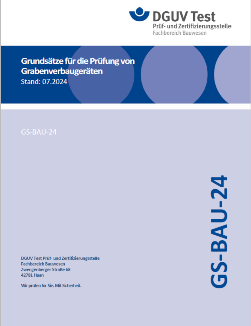 Die Wände von Gräben sind so zu sichern, dass diese während der einzelnen Bauzustände standsicher sind. Damit dies mit sicherheitstechnisch geprüften Geräten umgesetzt werden kann, wurde der Prüfgrundsatz GS-BAU-24 "Grundsätze für die Prüfung von Grabenverbaugeräten“ nach dem aktuellen Stand der Technik und der Normung neu erstellt.