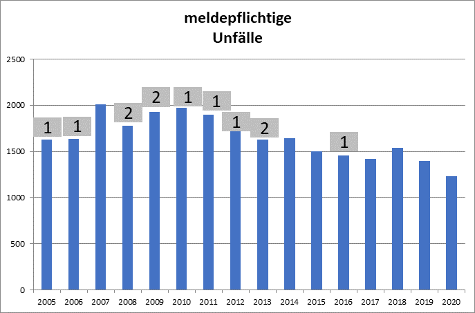 Meldepflichtige und tödliche Unfälle ab 2005 Bild: © BG Handel und Warenlogistik