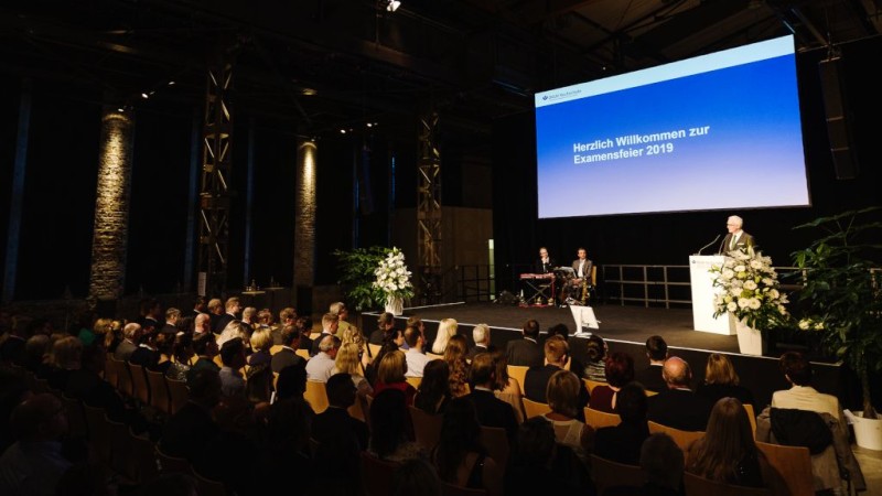 Die anschließende Moderation und Überreichung der Urkunden und Zertifikate übernahmen Prof. Uwe Sewerin, Fakultätsdekan der HGU, und Prof. Ralf Möller, Studiendekan Zertifikatsprogramme. Am Ende des offiziellen Teils hatte Prof. Becker noch die ehrenvolle Aufgabe, die Jahrgangsbesten des jeweiligen Studiums zu prämieren.