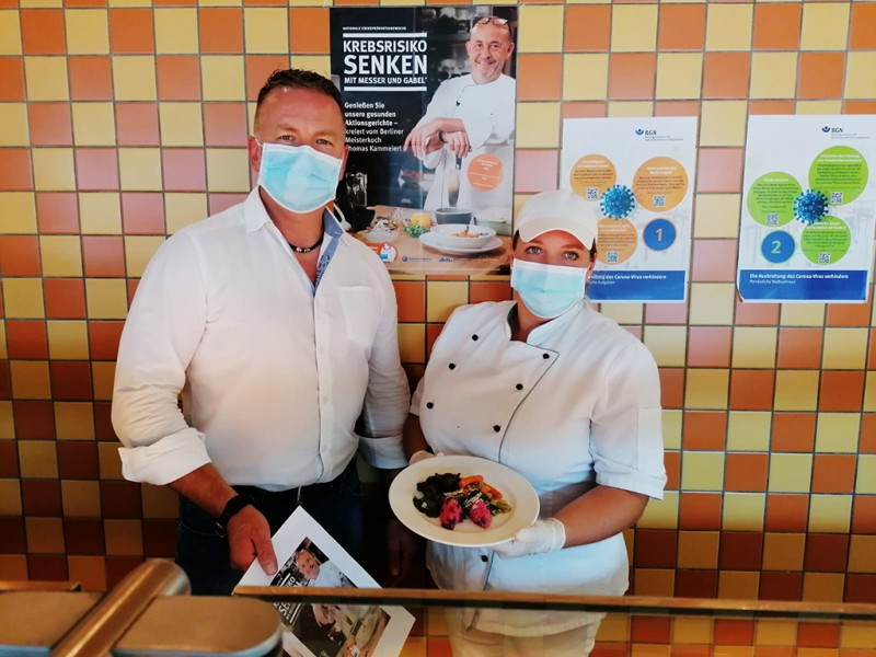 Vom 14. bis 18. September 2020 ist Krebspräventionswoche. In diesem Jahr dreht sich alles um das Thema Ernährung. Der Berliner Meisterkoch Thomas Kammeier hat dafür exklusiv fünf gesunde Rezepte (PDF, 4,4 MB, nicht barrierefrei) entwickelt – für Kantinen und zum Nachkochen zu Hause. Die Deutsche Krebshilfe und das Deutsche Krebsforschungszentrum haben sich mit dem Chefgastronomen des EUREF-Campus Berlin-Schöneberg zusammengetan, um zu zeigen, dass eine vollwertige Ernährung eine wahre Gaumenfreude ist und gleichzeitig dazu beitragen kann, das Krebsrisiko zu senken.
