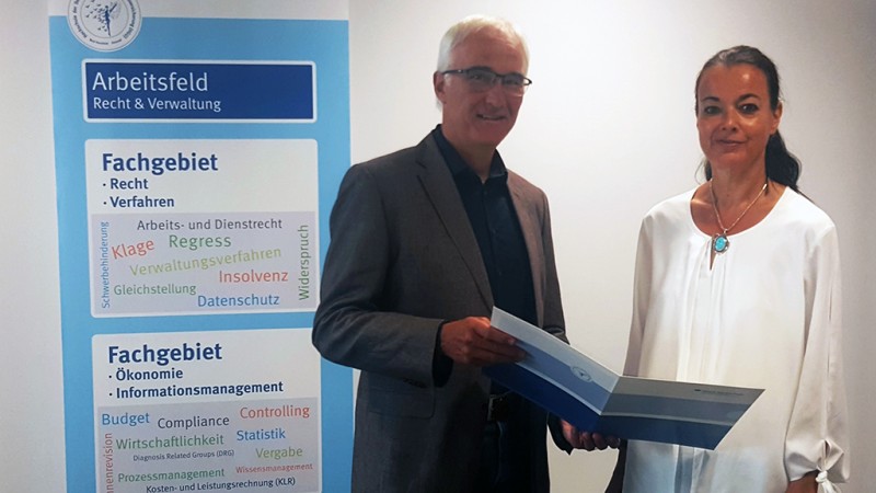 "Herzlich Willkommen" hieß es im Juli für Frau Dr. Kanzenbach an der Hochschule der Deutschen Gesetzlichen Unfallversicherung (HGU) in Bad Hersfeld. Am 20.07.2018 erhielt Professor Dr. Kanzenbach die Berufungsurkunde des Hessischen Ministeriums für Wissenschaft und Kunst auf die ausgeschriebene Professur mit dem Schwerpunkt Personal und Recht an der Hochschule der DGUV (HGU) aus den Händen von Rektor Prof. Becker.