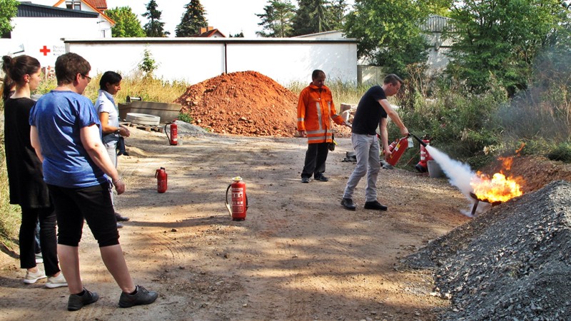 "Im Theorieteil vermitteln wir neben den Grundzügen des vorbeugenden Brandschutzes auch Kenntnisse über die betriebliche Brandschutzorganisation, die Funktions- und Wirkungsweise von Feuerlöscheinrichtungen, die Gefahren durch Brände sowie über das Verhalten im Brandfall. Besonders wichtig bei allen Löschversuchen ist der Eigenschutz. Niemals sollen sie sich selbst in Gefahr bringen." betonte Dirk Trümner, der als erfahrener Feuerwehreinsatzleiter aus der Praxis berichten konnte.