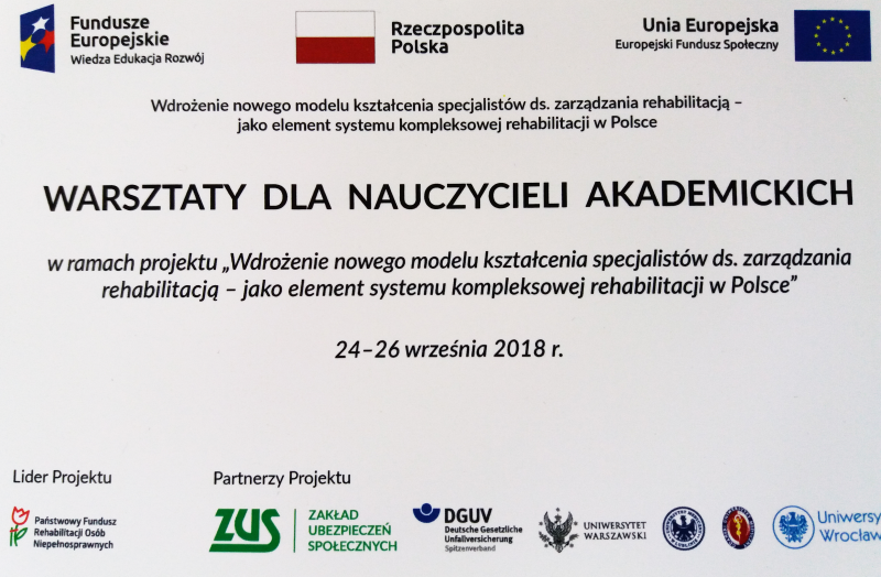 Um das Reha-Management etablieren zu können, erfolgt in einem ersten Schritt die Qualifizierung von Personen unterschiedlicher Profession. Dies geschieht durch ein Zusatzstudium, welches zunächst an vier Partnerhochschulen in Polen angeboten wird.