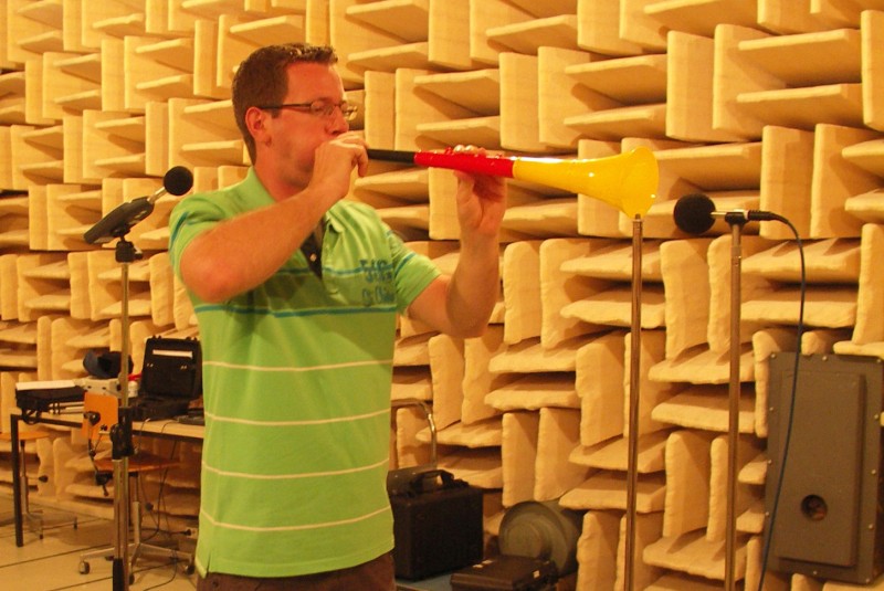 „Das kann schon ausreichen, um das Gehör zu vertäuben“, sagt Dr. Martin Liedtke. „Wer ohnehin stark lärmbelastet ist, für den ergibt sich ein zusätzliches Risiko.“ Der Lärmexperte weist zudem darauf hin: „Würde die Vuvuzela als einzelnes Instrument an einem Arbeitsplatz im Freien eingesetzt, müsste ein Mindestabstand von 5 Metern eingehalten werden, falls ohne Gehörschutz gearbeitet wird. Bei einem geringeren Abstand müsste Gehörschutz verwendet werden.“