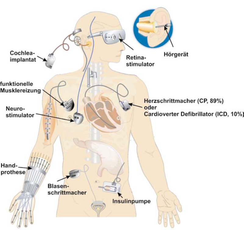 Für die Störbeeinflussung aktiver Implantate sind in erster Linie niederfrequente magnetische Felder verantwortlich. Hochfrequente elektromagnetische Felder und niederfrequente elektrische Felder werden durch im Implantat integrierte Filter und das Körpergewebe so stark abgeschwächt, dass eine Beeinflussung eines aktiven Implantats unwahrscheinlich ist.