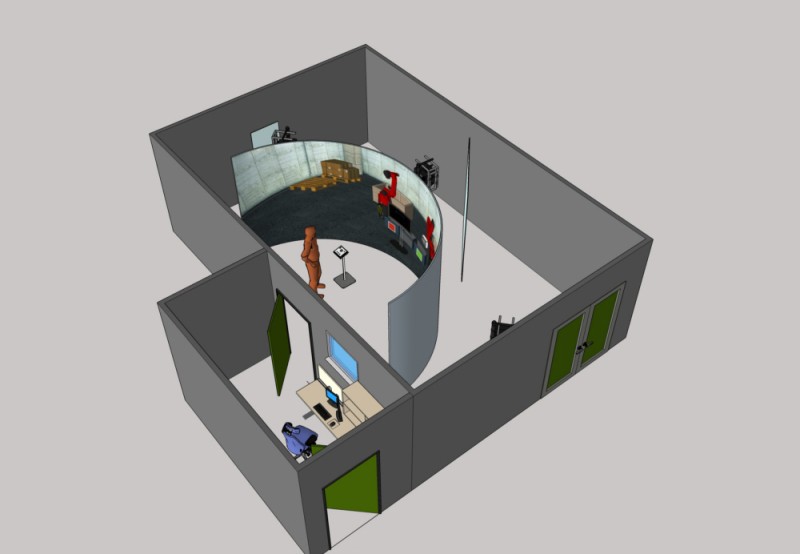 Im SUTAVE-Labor des IFA tauchen Nutzer mithilfe einer 24 m2 großen Projektionsfläche in virtuell unendlich große Arbeitswelten ein – aktuelle und zukünftige.