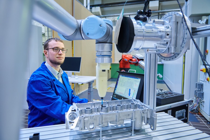 Kraftmessung an Roboterarm für sichere Zusammenarbeit zwischen Mensch und Maschine