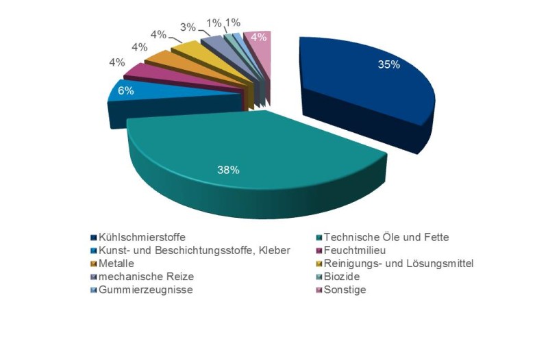 Bild 1: Auslöser von Hauterkrankungen in den Jahren 2008 bis 2010 bei der Berufsgenossenschaft Holz und Metall (BGHM)