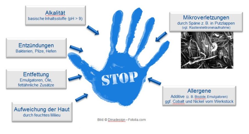 Bild 2: Ursachen für Hautgefährdungen bei Tätigkeiten mit Kühlschmierstoffen