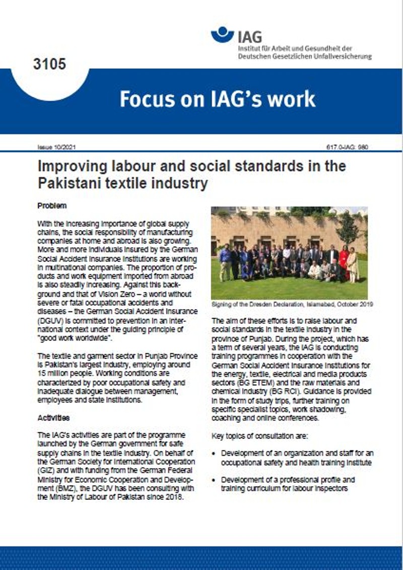 The information sheets "Focus on IFA's work" and "Focus on IAG's work" report in brief on the institutes' activities of interest. The information sheets also provide information on further literature and the names of contact persons.