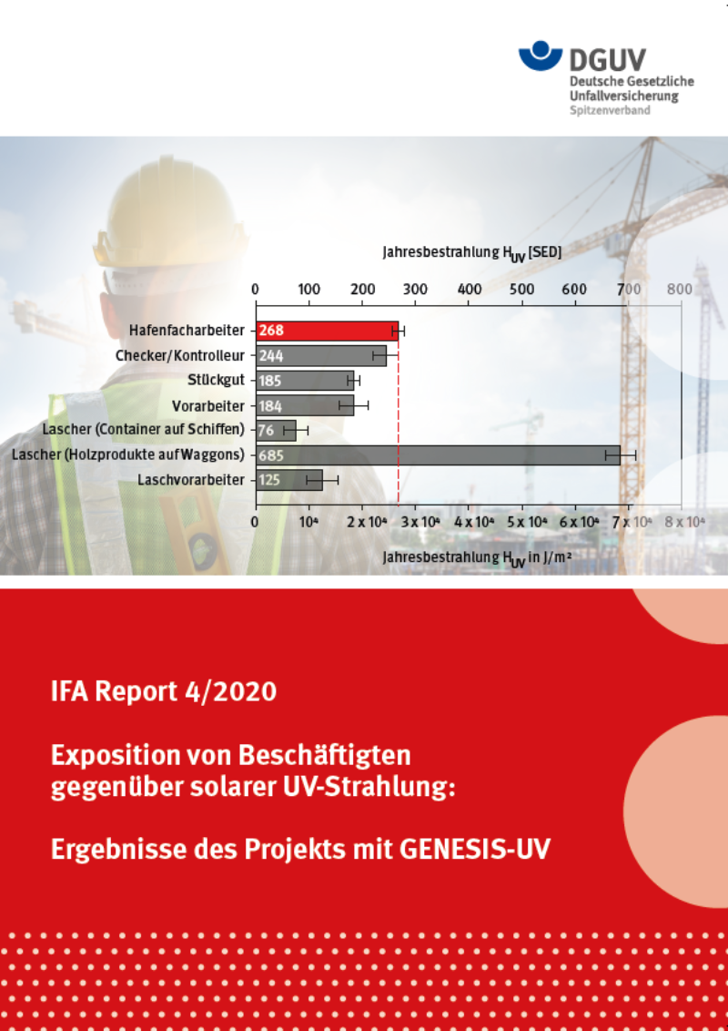 Wittlich, M.; Westerhausen, S.; Strehl, B.; Schmitz, M.; Stöppelmann, W.; Versteeg, H.: Exposition von Beschäftigten gegenüber solarer UV-Strahlung - Ergebnisse des Projekts mit Genesis-UV. Hrsg.: Deutsche Gesetzliche Unfallversicherung e.V. (DGUV), Berlin 2020.