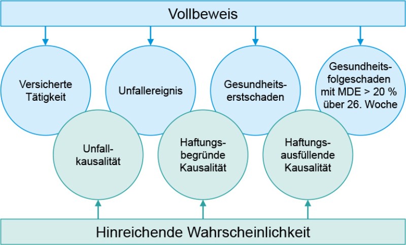 Abb. 1 Beweisanforderungen bei einem Arbeitsunfall und deren Folgen (nach DGUV 2021)
